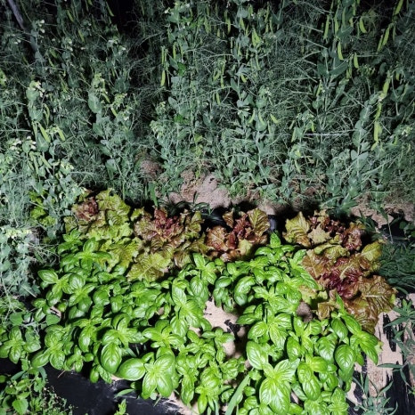 풍성하게 자라고 있는 바질과 완두콩 상추입니다. 그리고 풀들~~