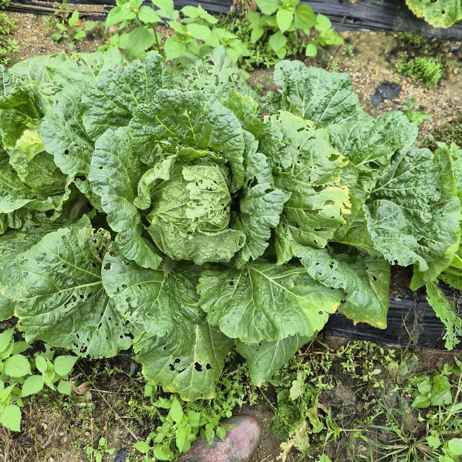 벌레랑 적당히 나눠 먹으며 키우는 배추입니다.