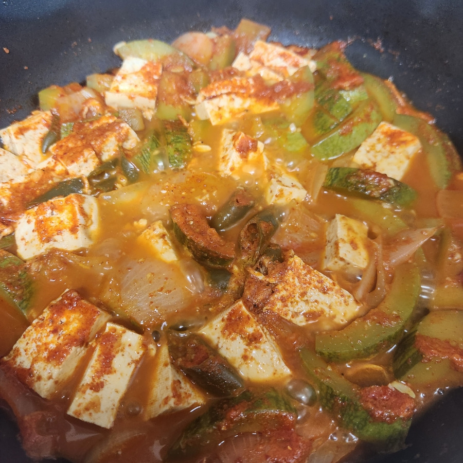 보글보글~~ 신나게 끓여요. 두부에도 살짝 간이 오르고 호박에도 간이 들고 맘에 들어요.
