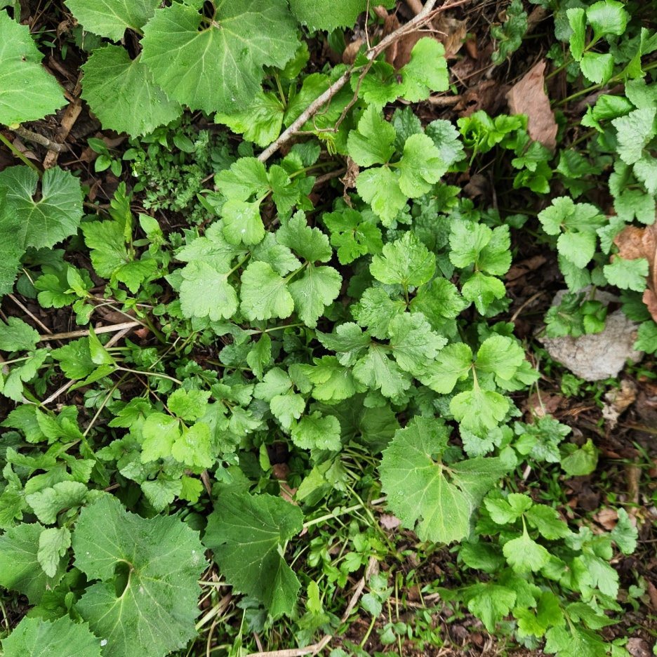 나무 그늘 아래 나뭇잎 이불 삼아 잘 자란 머위~