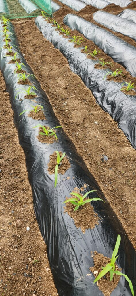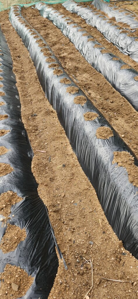 비닐 멀칭 사이에 쏘옥 들어가 큰 꿈을 꾸며 자고 있는 감자님들~