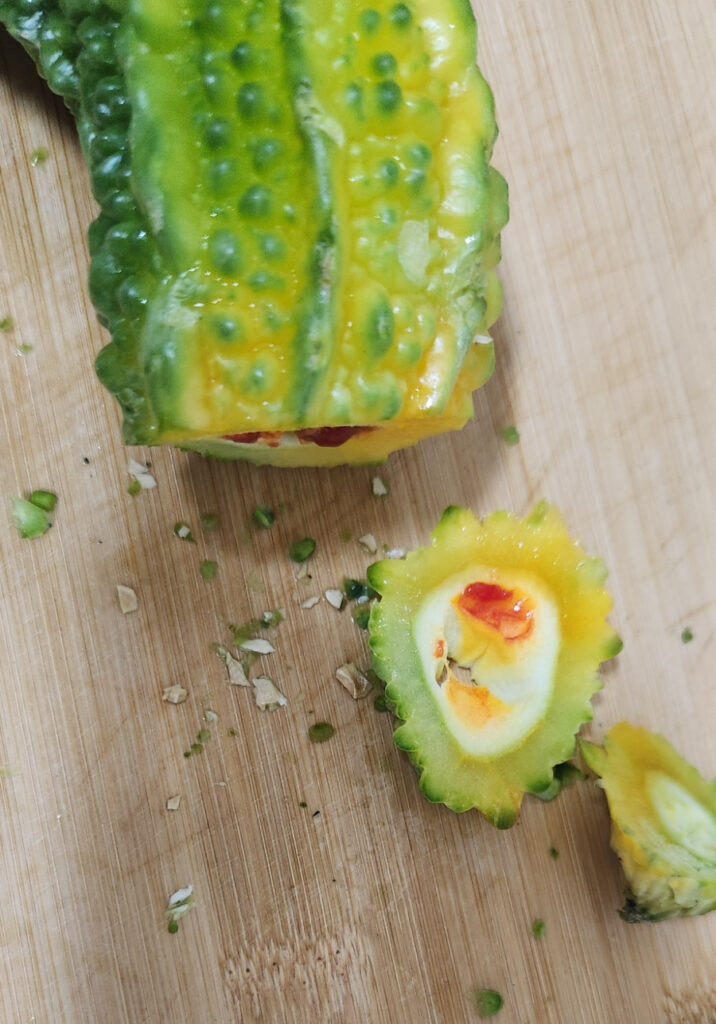 익어서 벌어진 여주 안에 젤리 씨앗~ 신기하지 않나요?