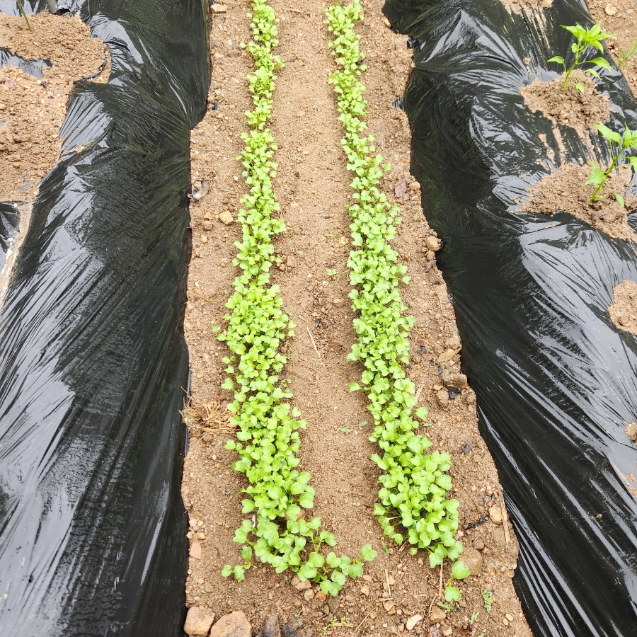 비닐 멀칭 위에 쏘옥~ 올려줍니다.