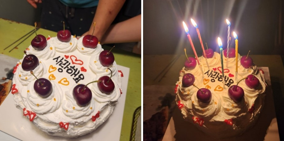 집에 오니 예쁜 케이크가 기다리고 있었어요.