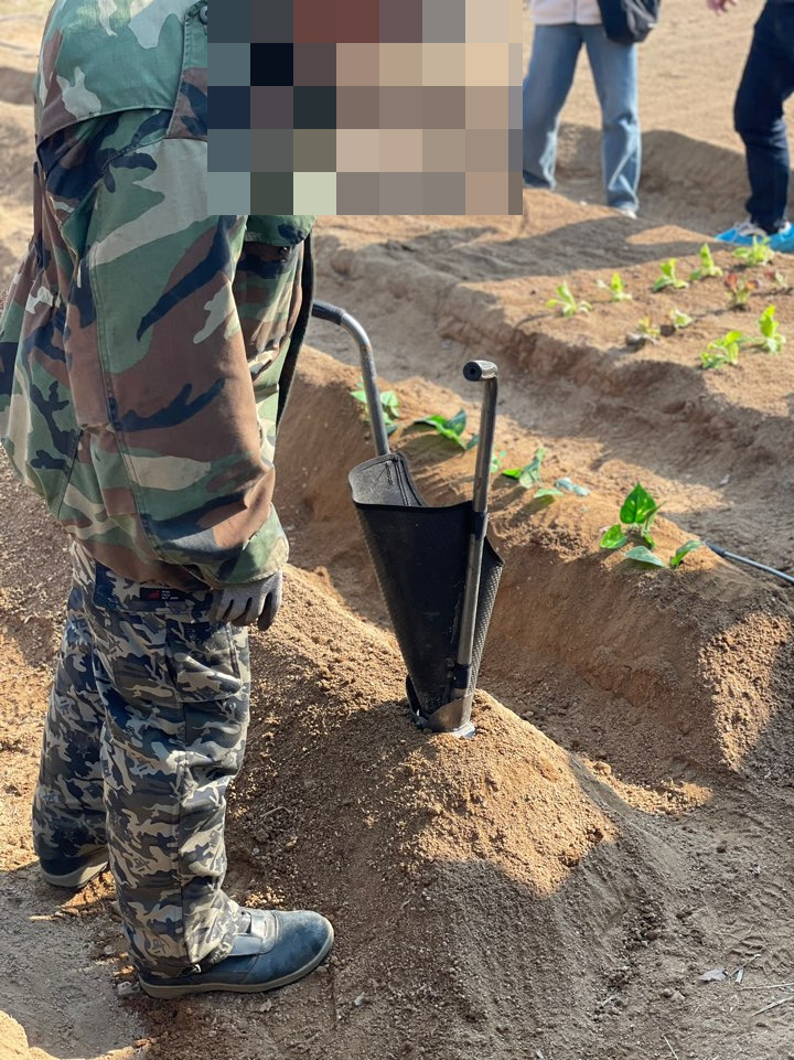 감자 심을 곳에 미리 물을 충분히 주고 물이 사라지면 그곳에 감자를 깊게 심어 줍니다.