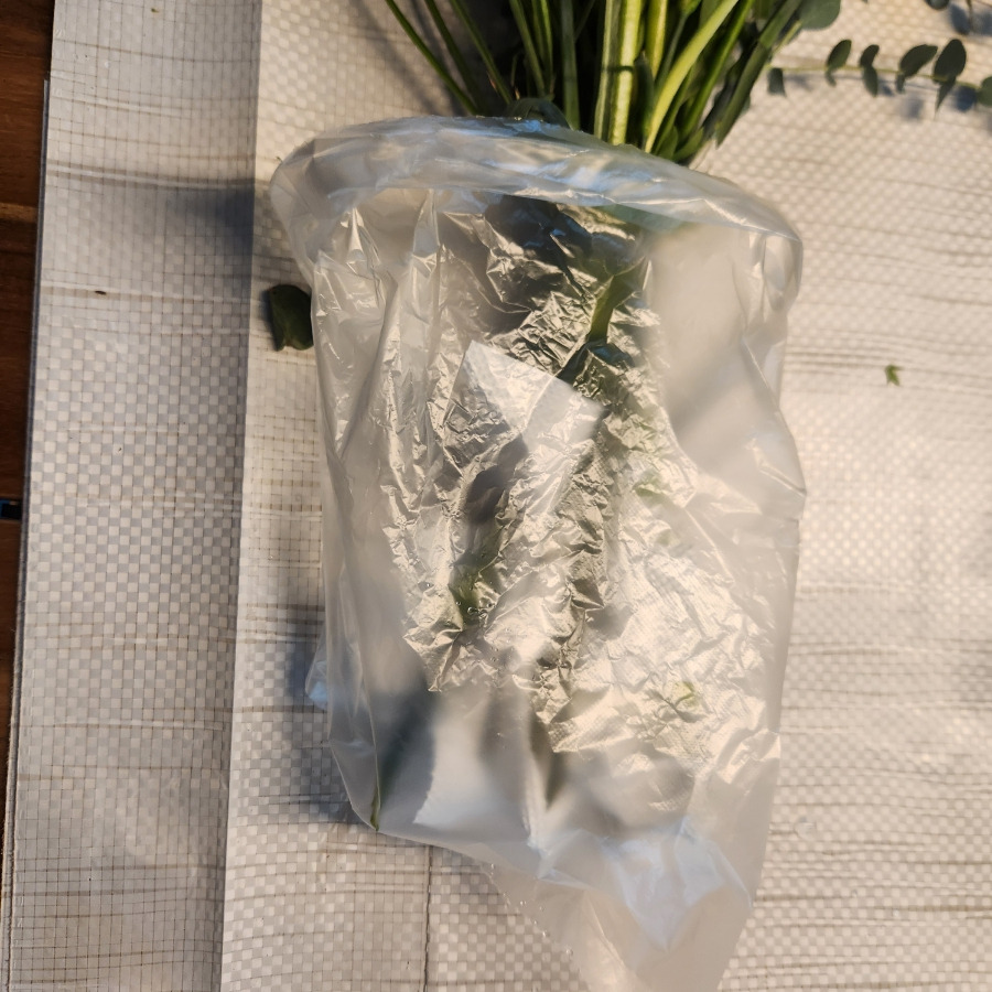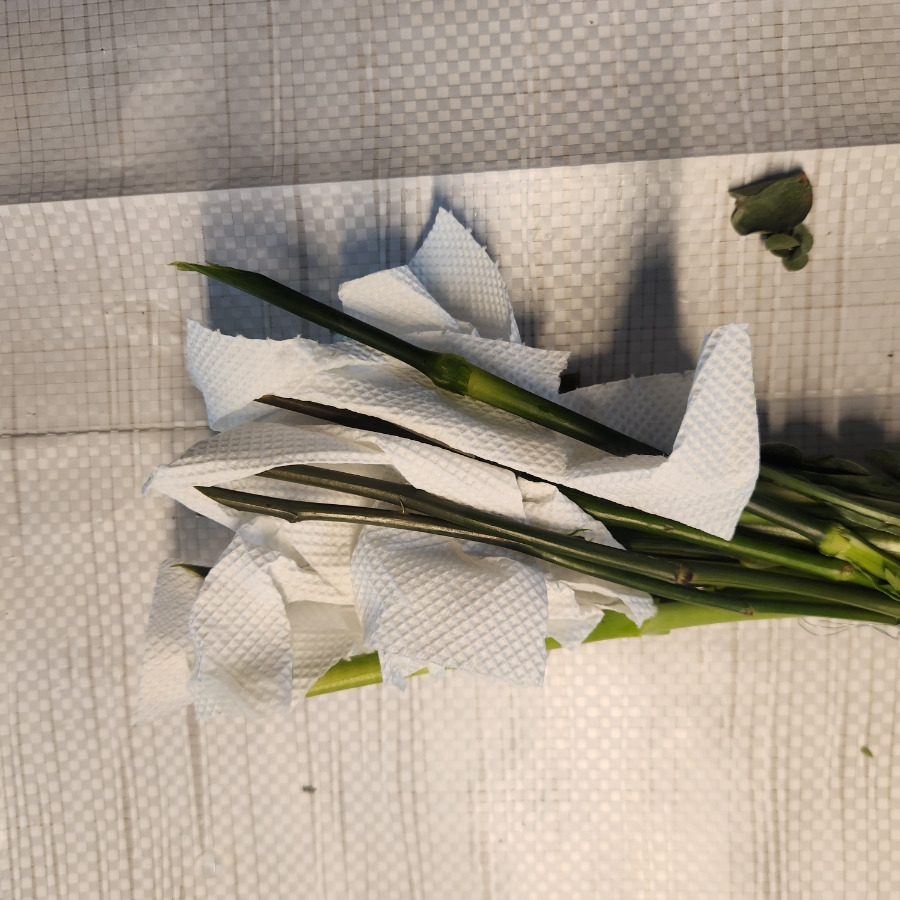 촉촉하게 물을 먹은 키친타월 덕분에 꽃도 싱싱합니다.