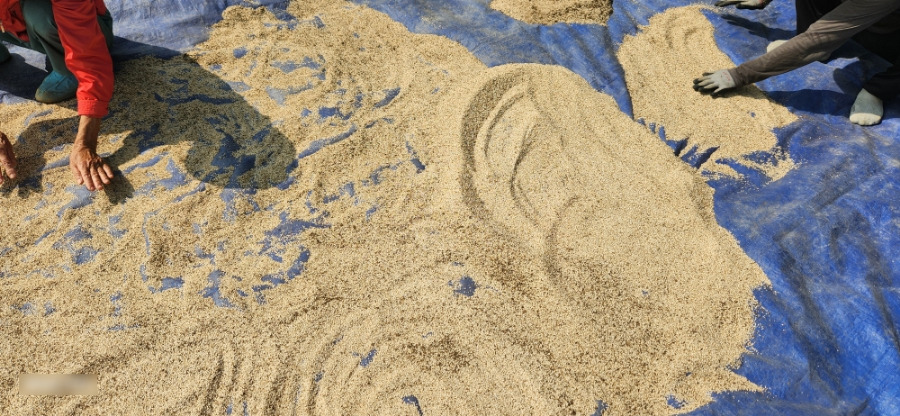 요래요래~ 자꾸 뒤집어 주라고 하셔요. 참깨가 빨린 건조되어야 풍구에 돌린다고요. 요렇게 펼치면 참깨 안의 벌레들도 밖으로 나갈 수 있는 기회가 되고요. 참깨도 바싹하니 건조가 된답니다.