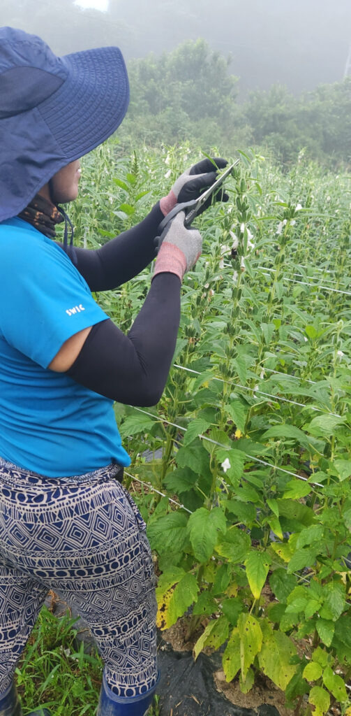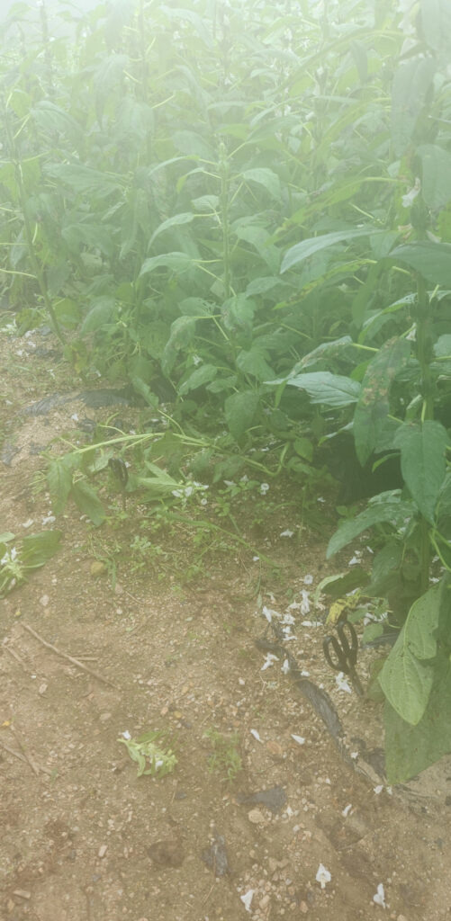 참깨는 순지르기를 통해 참깨 주머니 속의 참깨를 여물게 합니다.