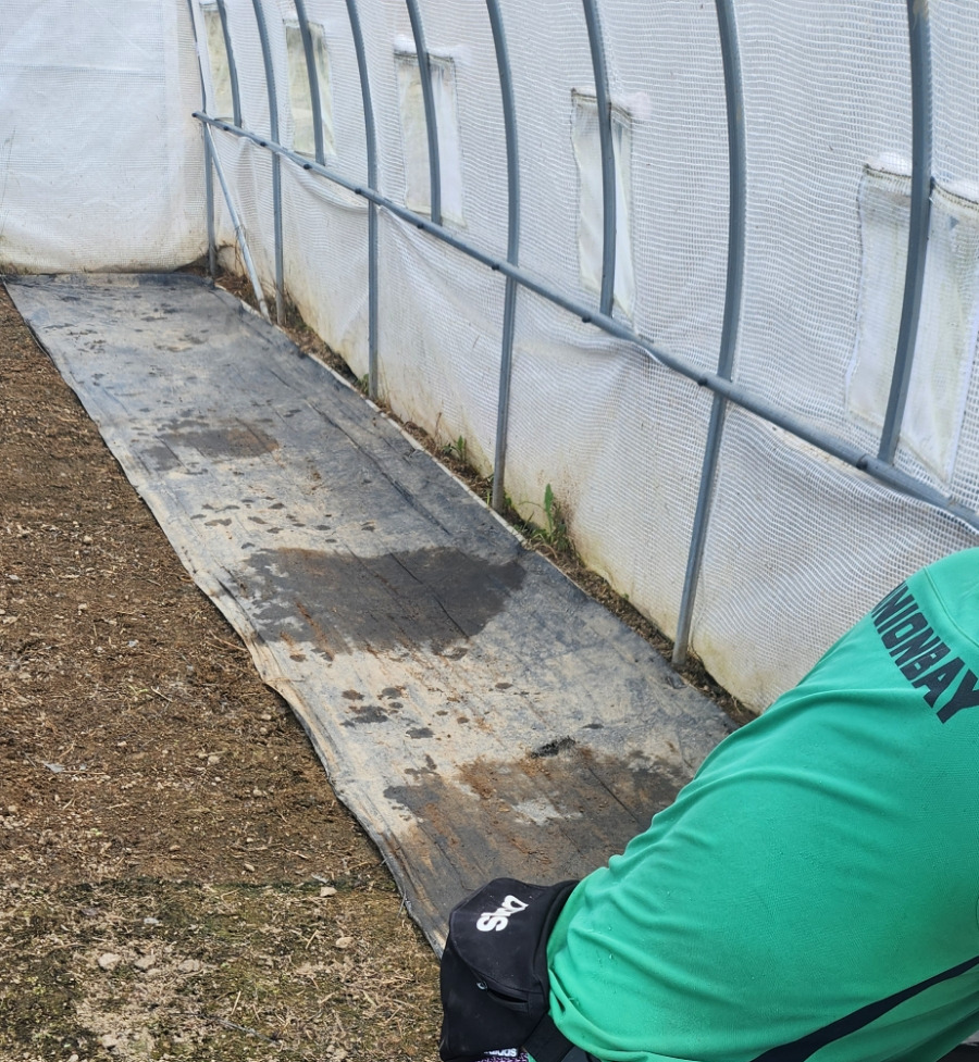 멜론이 있던 하우스 안도 제초 매트로 깔아 줍니다.