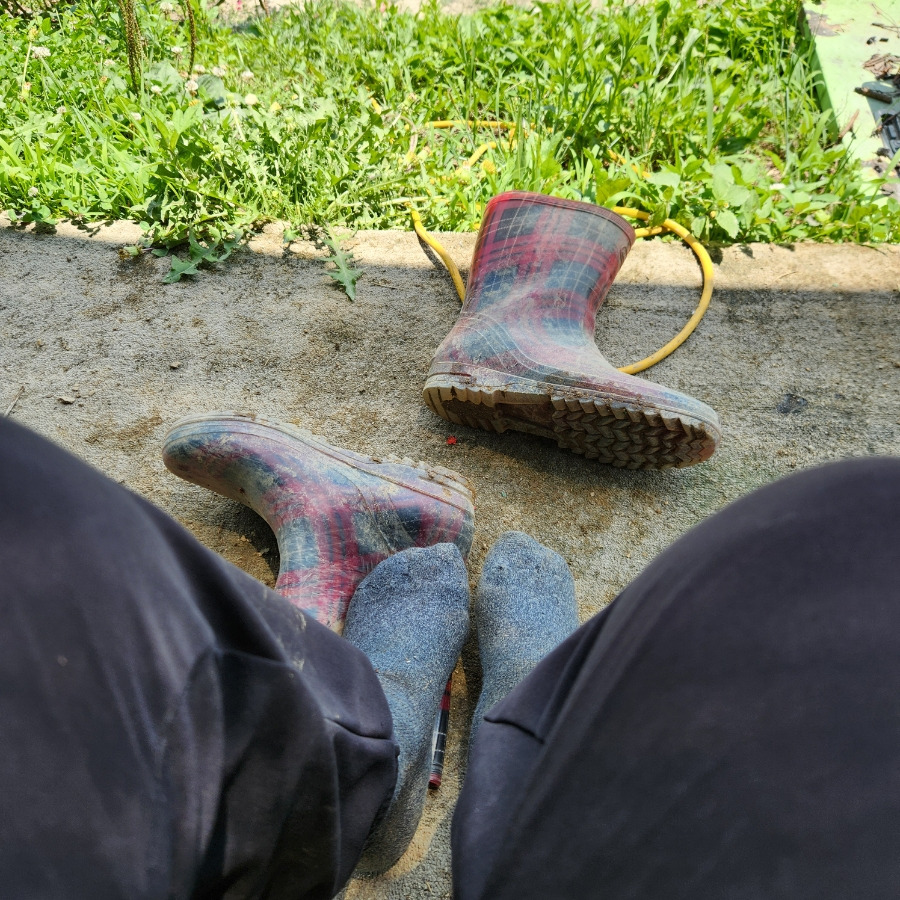 얼른 일어나서 일해야 하는 발 장화~~ 잠깐 쉼을 갖고 다시 밭으로 나갑니다.